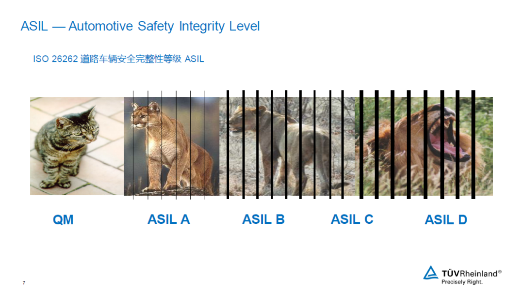 ISO 26262道路车辆功能安全标准提供了一整套故障控制和故障避免的方法,对应不同ASIL等级其要求也不同。通过上面这张图也可以相对直观地看出:ASIL A, B, C, D都是建立在QM体系之上。