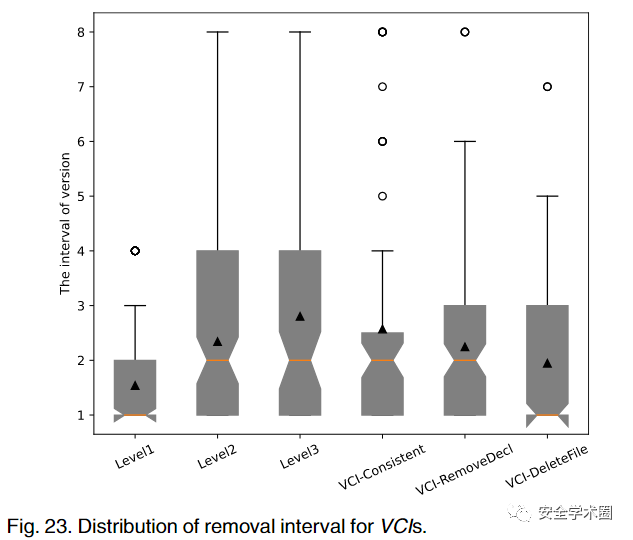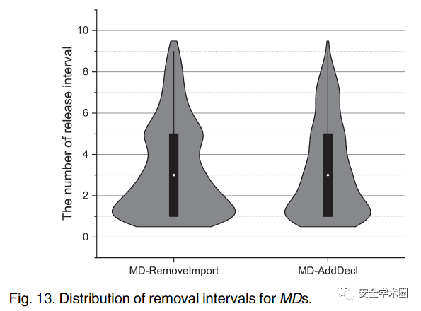 同时作者还统计了这些MD移除的版本间隔。