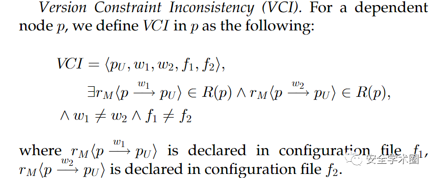 然后按照其是否存在冲突又分为了两个类别:1)Non-Conflicting Inconsistency(NCI),即存在同时满足两种依赖声明的项目版本;2)Conflicting Inconsistency(CI),不存在同时满足两个声明的版本。