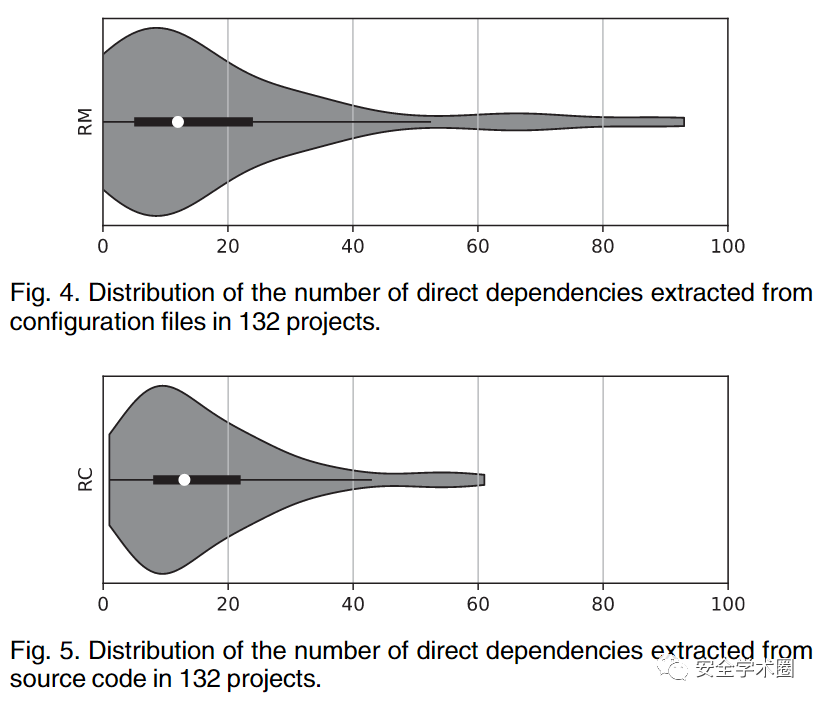 此外,作者还对配置文件以及源码中存在的依赖数量分布进行了分析。