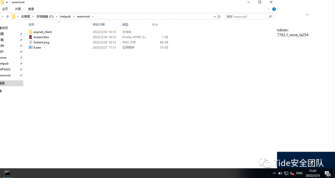 一个不能说明问题咱们再测一个,这次我们测试iis的根目录,安装iis服务然后将木马复制到该文件夹下。