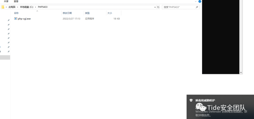 手动新建PHP5433 然后复制木马重命名为php-cgi.exe,然后被秒杀了(测试木马为cs原始生成的)。