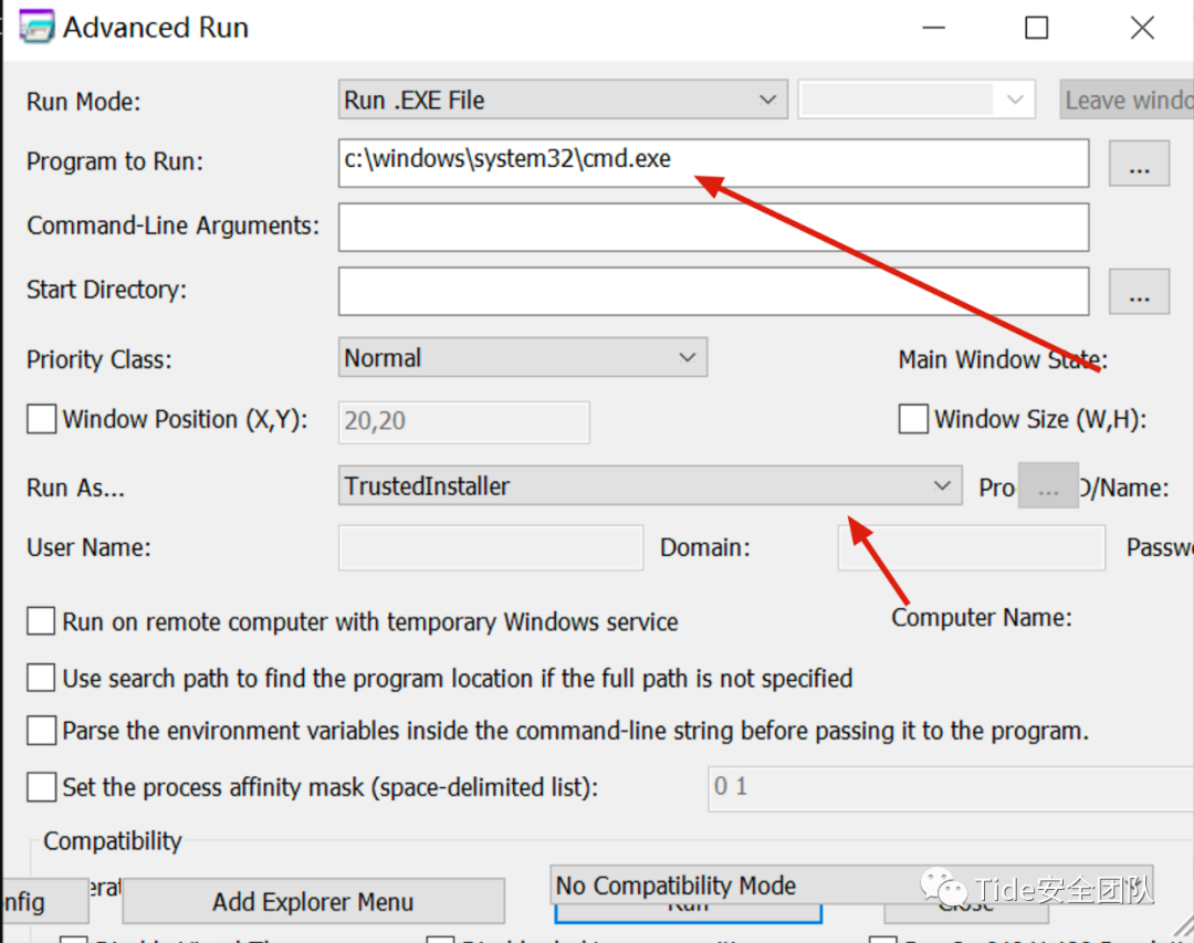 咱们这里不对他做探讨能用就行。因为要修改注册表所以需要高权限所以我们需要system或者trusted