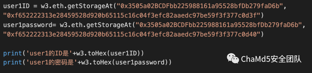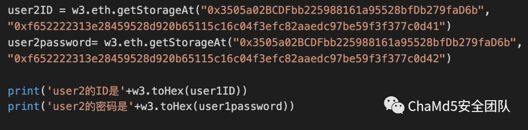 在合约中,结构体User中又id和password,在动态数组users中,是按照顺序存储的。例如:用户1的id,用户1的password,用户2的id,用户2的password……。下面我们来读取两个用户的 id 和 password: