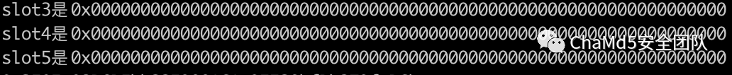 slot 3 ,slot 4,slot 5 ===> bytes32[3] public data;,存储定长数组的三个元素