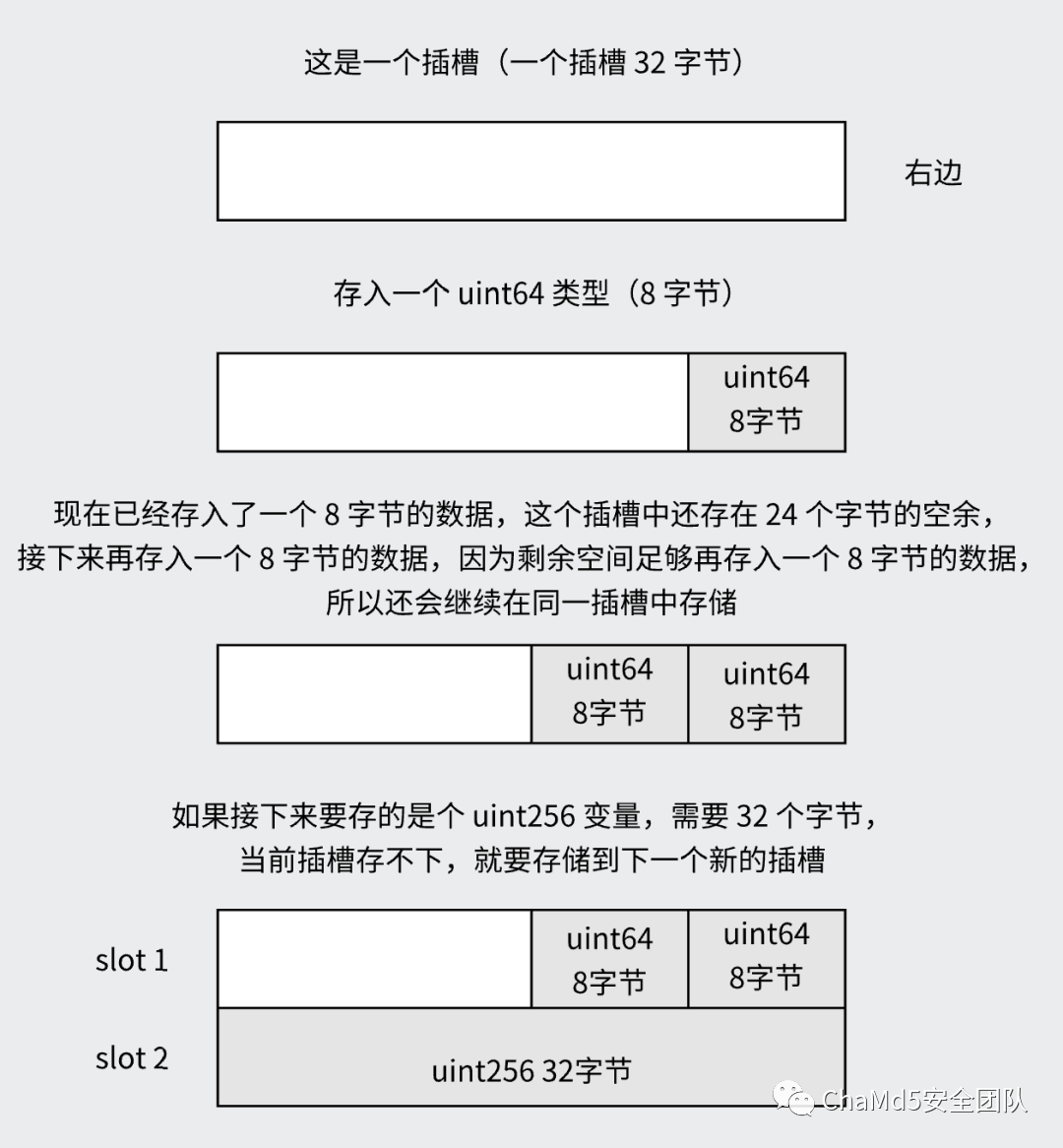 EVM的存储大小(storage)共有 2^256 个插槽,每个插槽 32 个字节