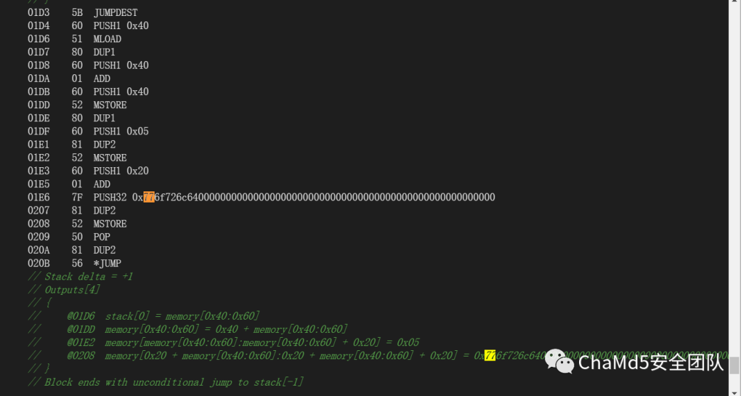 从这里我们又判断:PUSH32是字符串的操作码,PUSH3是数值的操作码