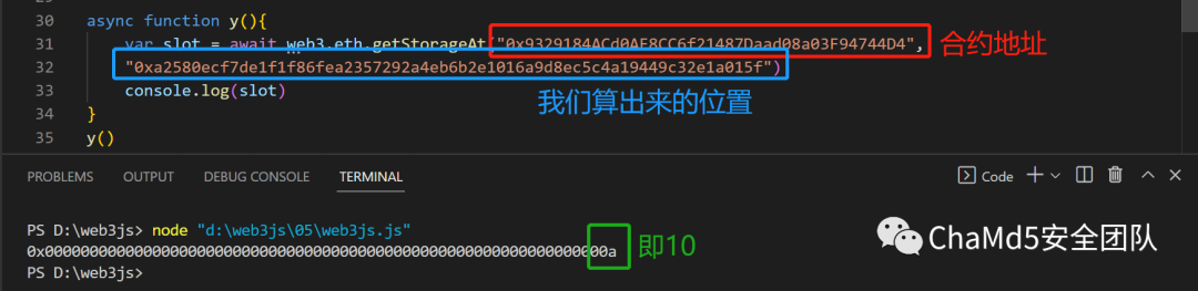 我们的实际数据存储在:test = 0x290decd9548b62a8d60345a988386fc84ba6bc95484008f6362f93160ef3e563