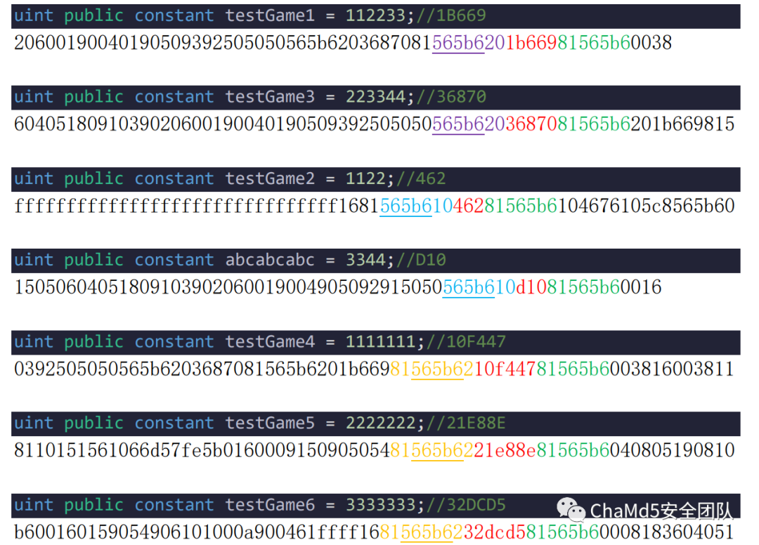 bytecode发现:常量数值前面一定有(不相邻)565b6,后面一定是 81565b6。