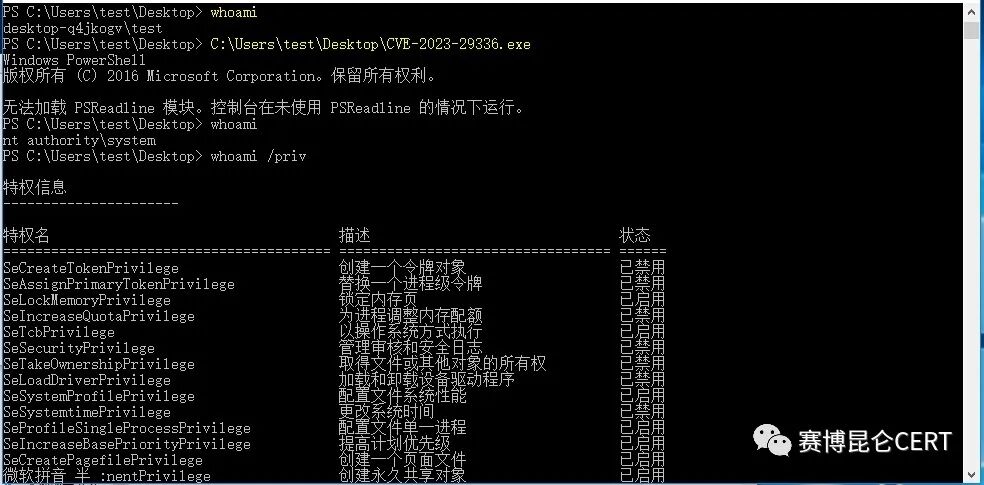 目前赛博昆仑CERT已确认漏洞原理,使用低权限用户运行poc, 复现截图如下: