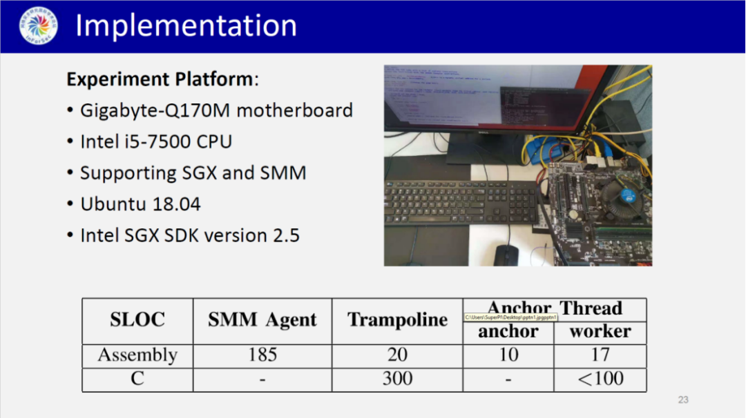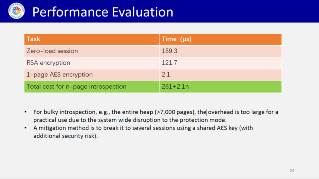 为了证实SMILE的有效性和可用性,周博士选择了一块支持SGX和SMM的主板进行了方案实现,并对其性能开销进行了评估。