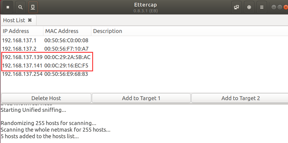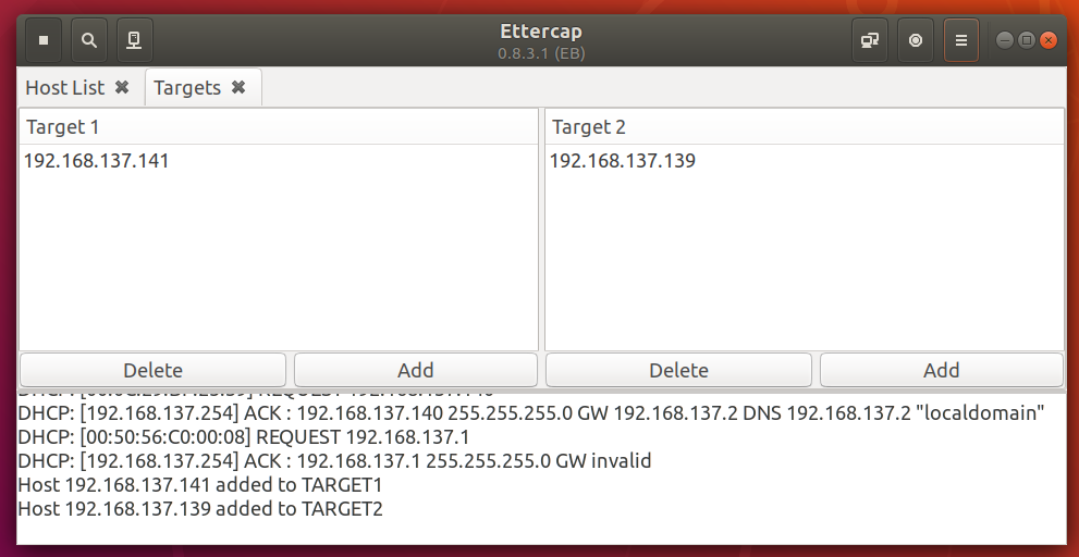 将.141主机A添加到Target1,将.139主机B添加到Target2,在Current Targets中查看Targets如下:
