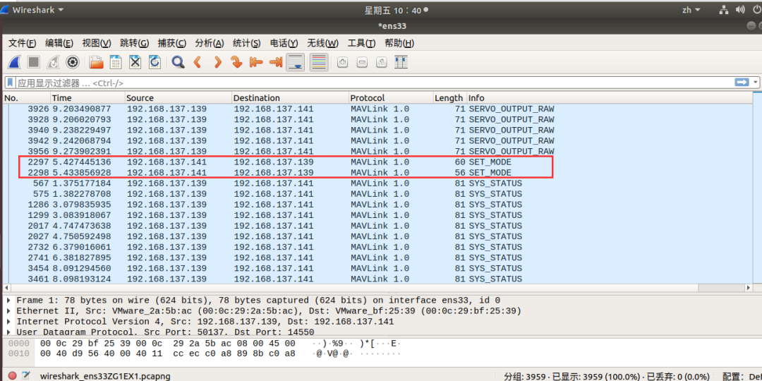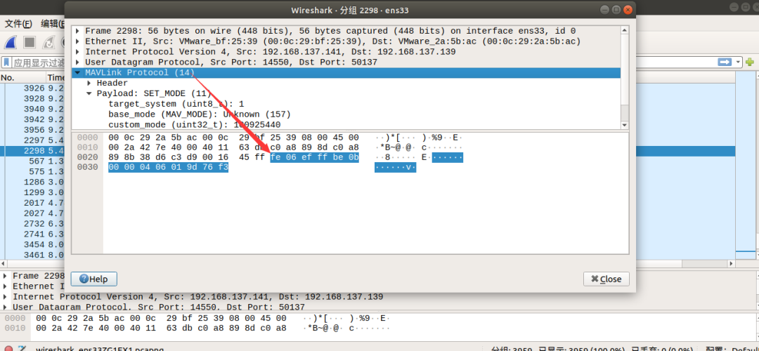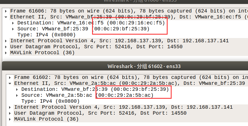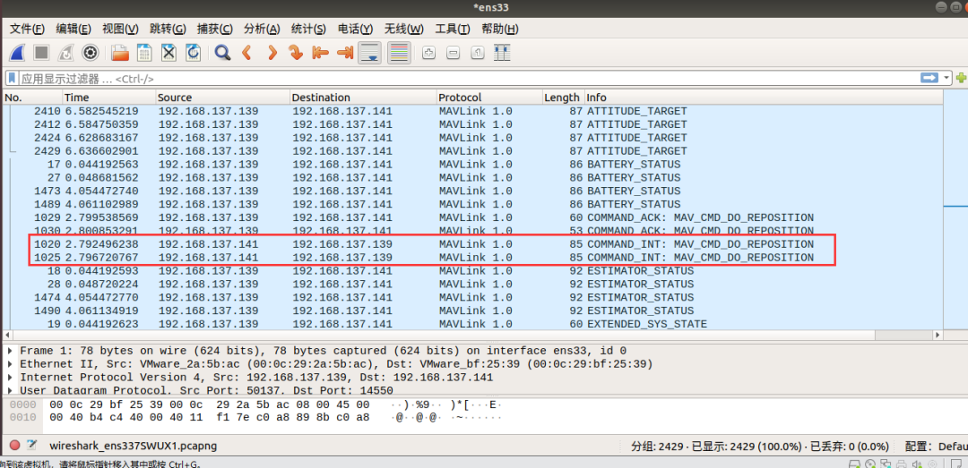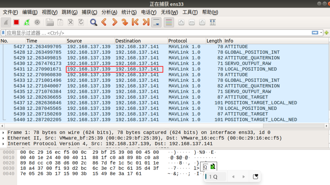 经过ARP嗅探,能够捕获到报文从QGC->attack,attack->px4-gazebo和px4-gazebo->attack,attack->QGC。