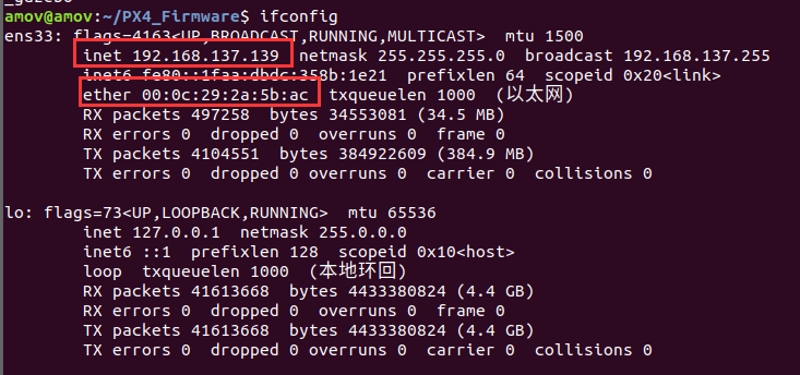 查看QGC和px4-gazebo计算机的ip地址和MAC地址