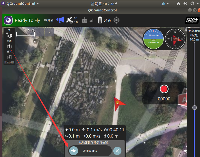 在GQC计算机中降落无人机,使无人机处于待起飞状态: