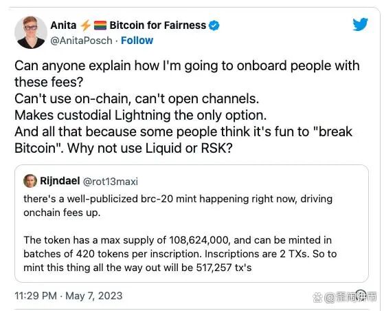 部分用户谴责 BRC-20 热潮是拥塞的根本原因,一些观察家甚至声称BRC -20 的采用类似于对比特币网络的 DDoS 攻击。