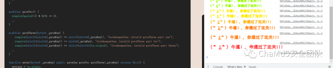 本道题要我们成功调用enter(bytes8 _gateKey),那么就需要通过三个修饰器gateOne,gateTwo和gateThree(_gateKey)的检验。
