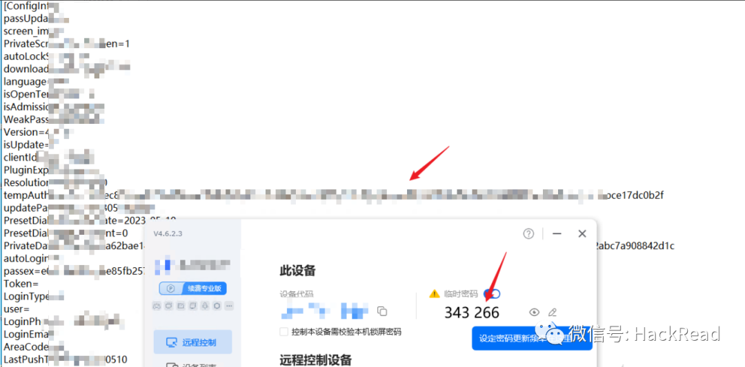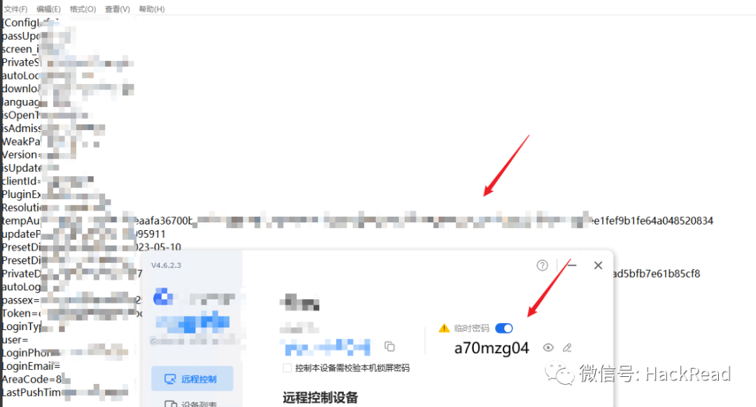 利用方法很简单,直接将受害机的临时密码复制出来,替换到本机的config.ini文件中,重启本机的