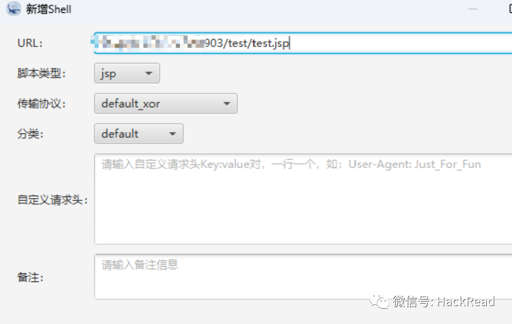 在这里,我们需要上传一个war包,war包这样构造,首先选择一个JSP木马,将其命名为test.jsp,然后