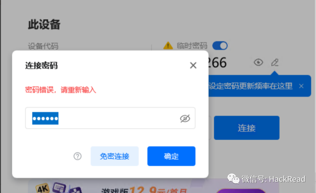 使用设备识别码:6xxxxxxx5 和 解密出来的密码:123456 进行连接