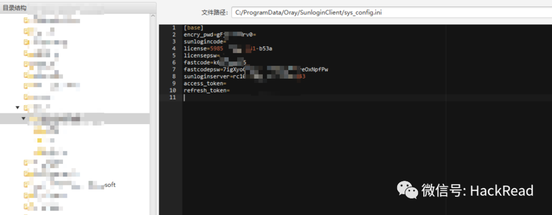 HKEY_USERS\.DEFAULT\Software\Oray\SunLogin\SunloginClient\SunloginGreenInfo在 C:\Program Files\Oray\SunLogin\SunloginClient\并没有获取到config.ini配置文件,只是看