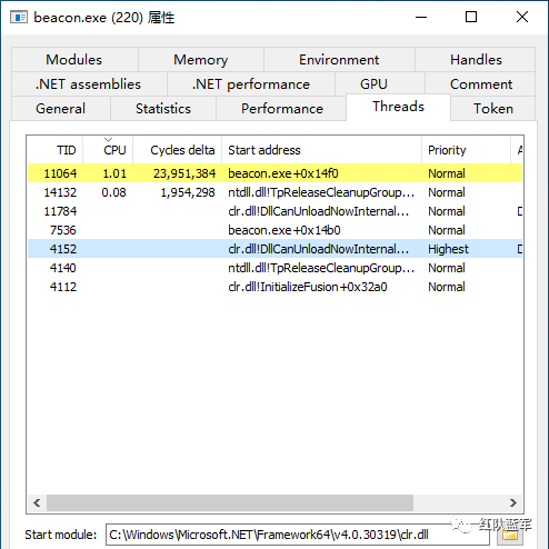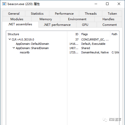 此时用 Process Hacker 可以看到多出来一些 .NET 信息