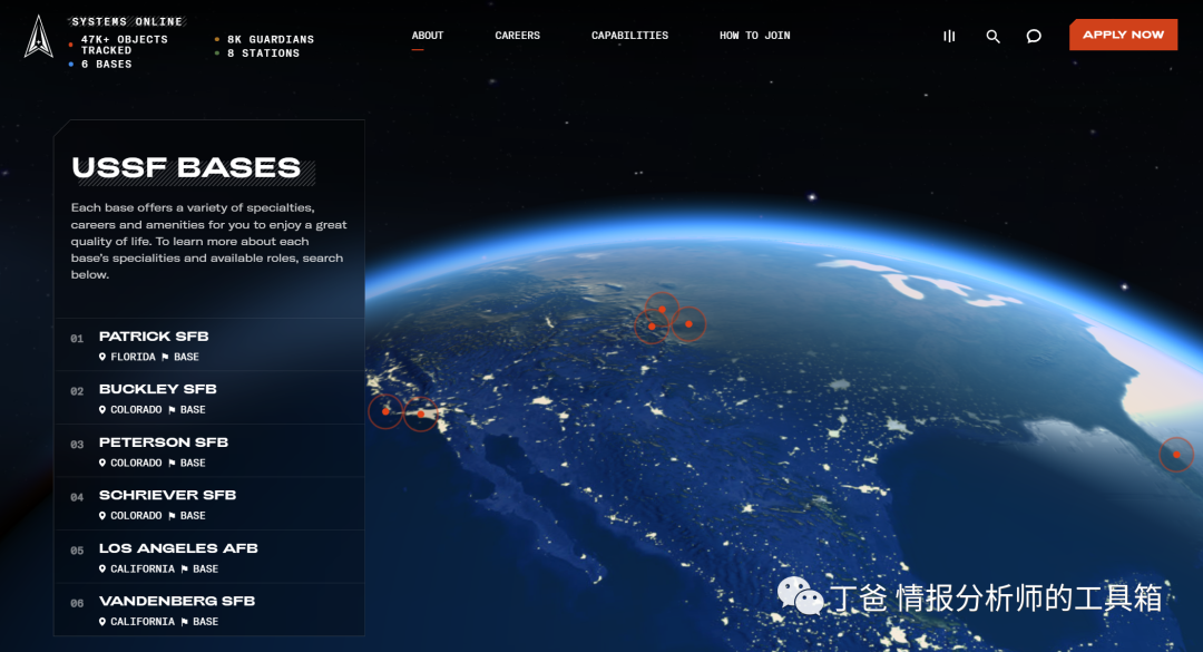 首先,在太空军情报机制内部,情报搜集任务主要由第2太空德尔塔部队下属第15太空监视中队和第20太空监视中队、第3太空德尔塔部队下属第5电磁作战中队、第4太空德尔塔部队下属第2太空预警中队和第6太空预警中队完成。第15太空监视中队、第20太空监视中队和第5电磁作战中队主要通过太空监视网络发展太空态势感知能力以获取环境监测信息,为防御性和进攻性太空对抗提供全面的情报支持。