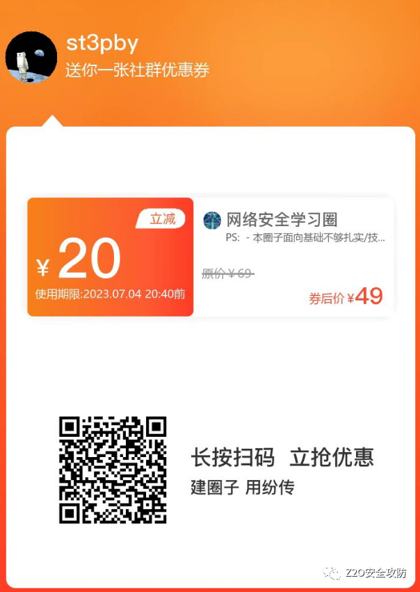 由于本人在入门阶段没有人带,也不想花钱报班,完全靠自己摸索,走了很多弯路,浪费了很多时间。所以建此圈子来引导一下半入门或者刚入门或者想系统的梳理一下自己知识体系的师傅们,提供以下内容:1、每周发布学习 2023-5-12 22:8:48 Author: Z2O安全攻防(查看原文) 阅读量:37 收藏