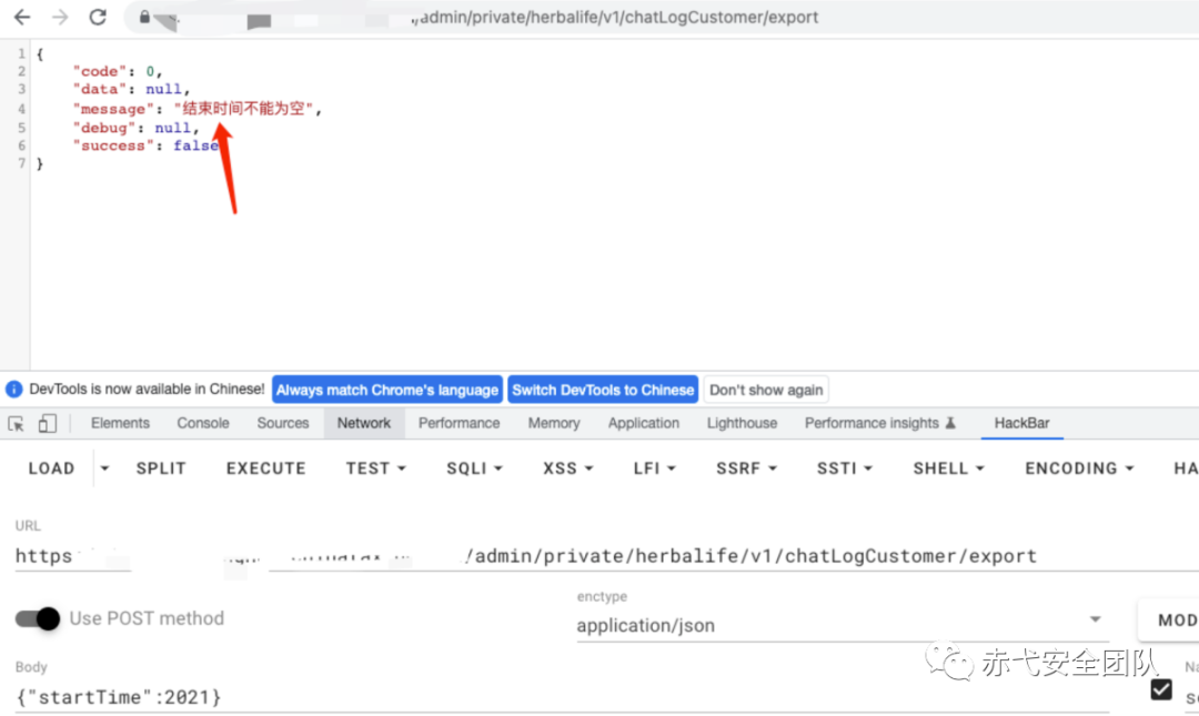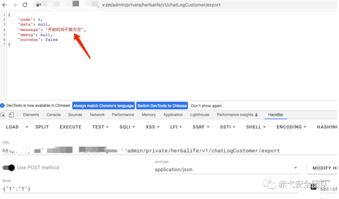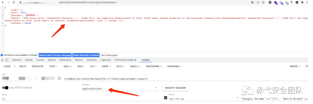 这里发现,提示json的传的参数是错误的,那么就可以确认是json的传参方式,只是参数没传对。