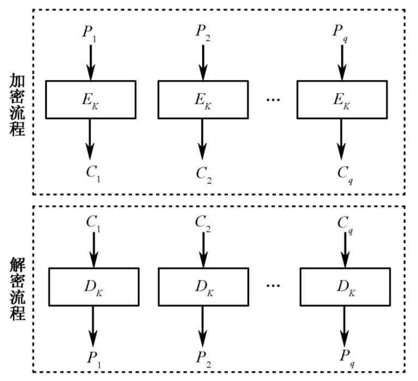①同一密钥,同一加密算法,分组加密,分组长度固定