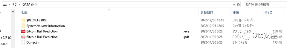 除了压缩 ZIP 或 RAR 格式的恶意软件或将其包含在 ISO 文件中外,攻击者还可能将其包含在虚拟硬盘文件(VHD 文件)中。VHD文件是一种在Hyper-V中使用硬盘的格式,这是一种虚拟化技术,可以通过双击Windows操作系统来挂载。图 6 显示了一个包含恶意软件的已装载 VHD 文件。它包含一个诱饵PDF文件,主要的恶意软件(DLL文件)和一个可执行文件(EXE文件)来启动DLL文件。
