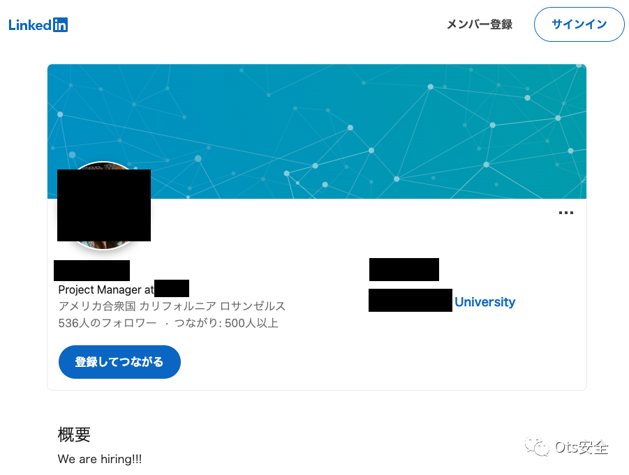 此外,我们已经确认,与目标联系的LinkedIn帐户会发送伪装成提供工作的人的恶意软件。图 3 显示了联系目标的LinkedIn帐户,我们认为该帐户已被攻击者入侵。到目前为止,我们还没有弄清楚攻击者是如何破坏SNS帐户的。