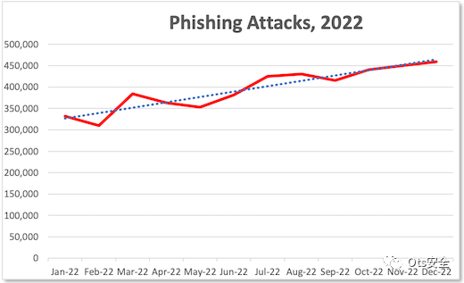 2022 年是网络钓鱼创纪录的一年,APWG 记录了超过 470 万次攻击。自 2019 年初以来,网络钓鱼攻击的数量以每年超过 150% 的速度增长。