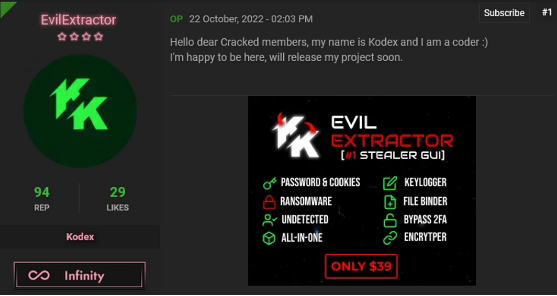 EvilExtractor在网上出售