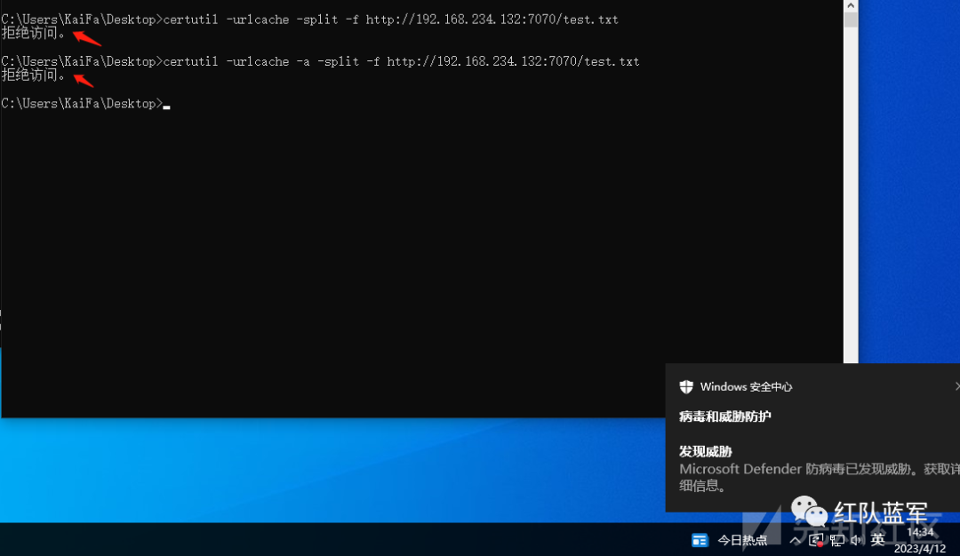 尝试利用默认的下载语法,以及往其中加入无效的参数发现也是被defender拦截了