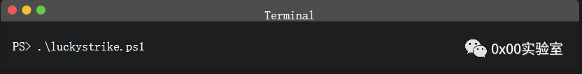 这会将所有 Luckystrike PowerShell 脚本和文件下载到您的桌面上。下一步是在具有管理权限的 PowerShell 提示符下执行 luckystrike.ps1 脚本。这可以通过运行以下命令来完成:![]()