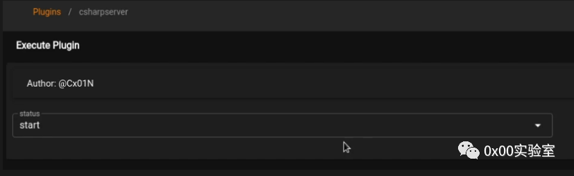 设置监听器后,我们需要设置 stager,但是,在我们这样做之前,我们需要启动将用于编译 stager 的 csharp 服务器。这可以通过展开侧边栏并单击插件来完成。之后,您需要单击 csharp 插件并启动它,如下面的屏幕截图所示。![]()