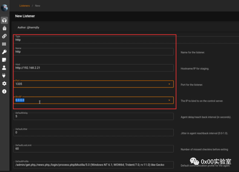 您现在需要指定侦听器选项,确保在主机字段中指定您的 Kali IP,如下面的屏幕截图所示。![]()