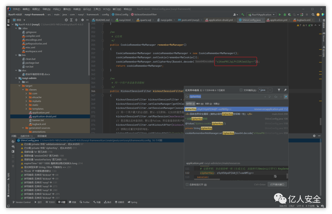 若依使用的是4.6的版本,存在前台shiro漏洞利用,但是key被修改了