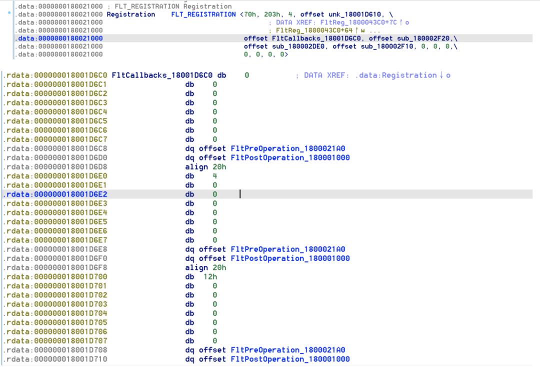 Sysmon与文件相关的监控主要由Minifilter过滤器实现。minifilter的设置需先设置程序过滤的IRP消息,然后使用FltRegisterFilter注册过滤器,接着使用FltStartFiltering开启过滤器,最后当驱动卸载时要使用FltUnRegisterFilter卸载过滤器。
