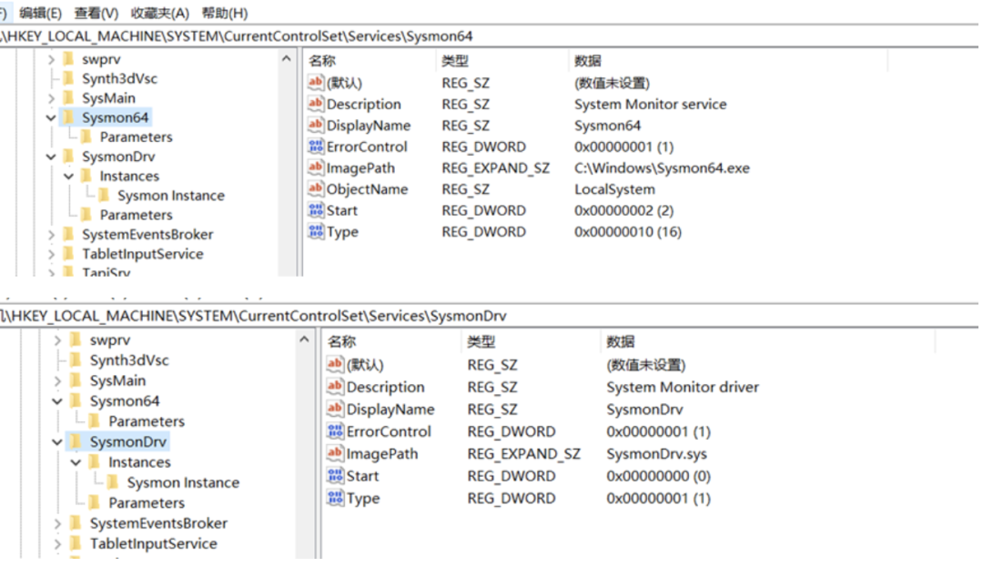 \HKEY_LOCAL_MACHINE\SYSTEM\CurrentControlSet\Services\SysmonDrv\Instances计算机
