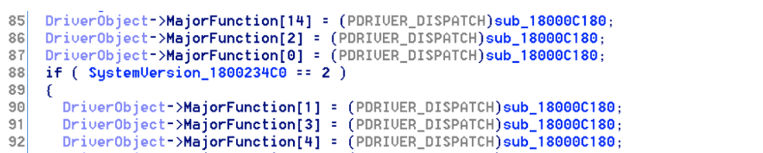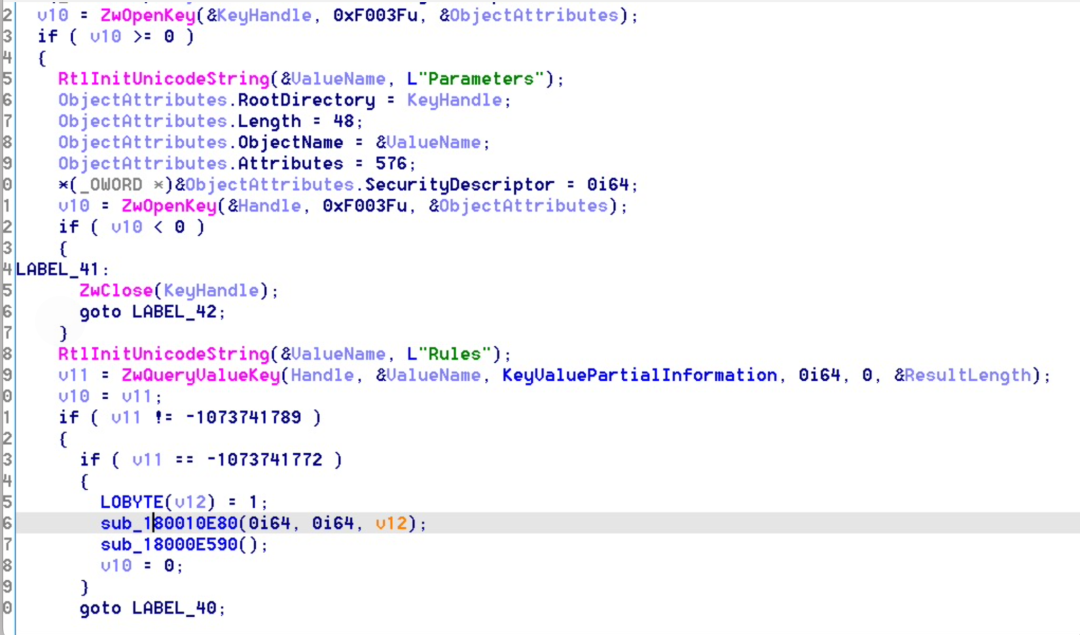 下面我们先看驱动的具体流程,在驱动中会先判断当前的系统版本比win8、2012高,然后读取之前在注册表中设置的信息: