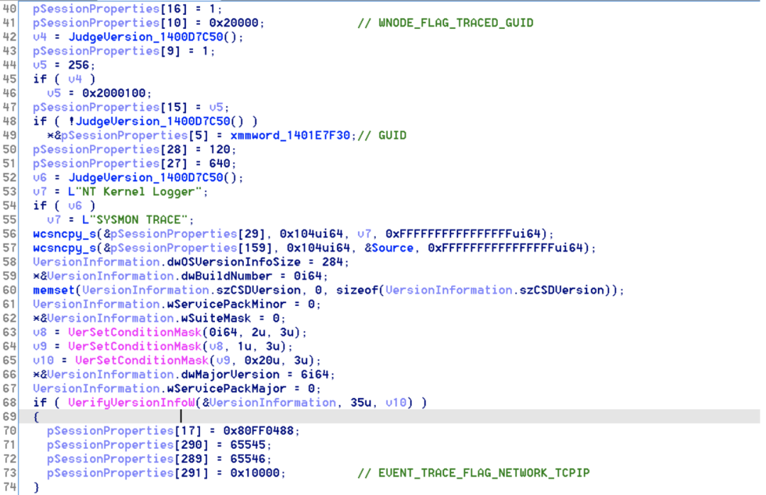 下面是创建ETW事件监控网络连接,这里StartTrace传入的是KERNEL_LOGGER_NAME,不需要使用EnableTraceEx2来开启,所设置session的EnableFlags 为EVENT_TRACE_FLAG_NETWORK_TCPIP:
