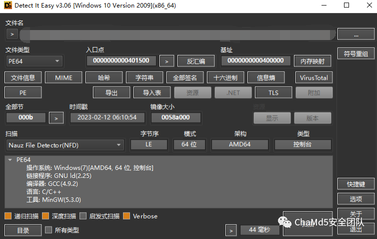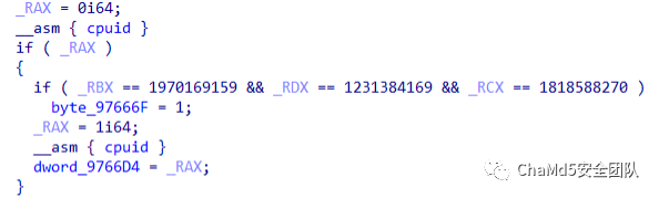 利用 Go_Parser 解析 runtime 库,把生成map文件导入到 x64dbg 检测处理器是否为 intel 处理器