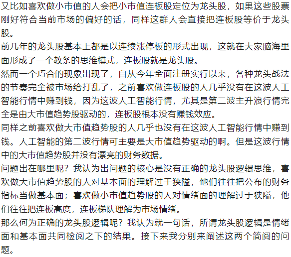 一代版本一代神,代代神仙不相同,核心问题就是没有处理好龙头股逻辑是情绪面和基本面检阅驱动的,没有全面的去认识何为情绪面,何为基本面。