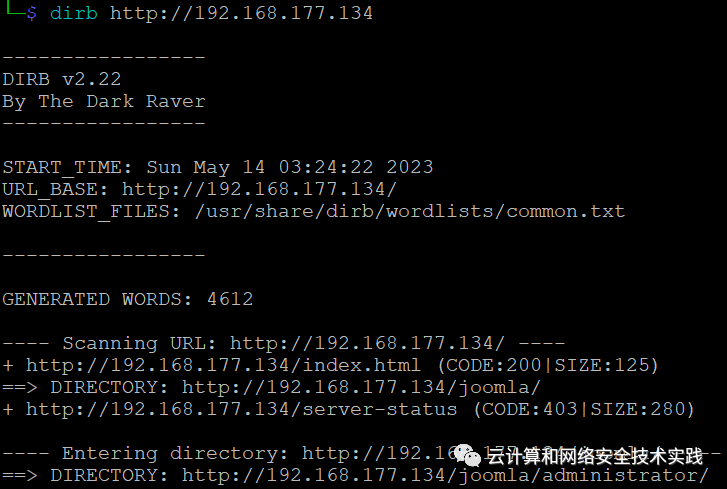 有web服务,进行目录扫描,dirb http://192.168.177.134,