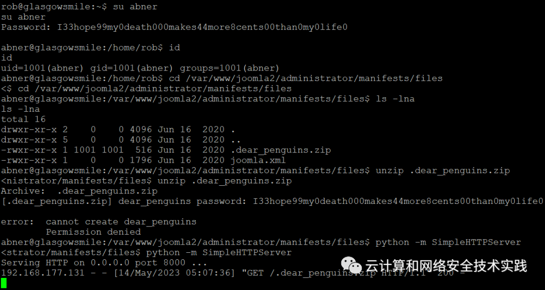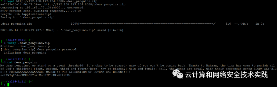 获取到一个压缩文件,靶机上没有权限解压,下载到kali攻击机上解压,