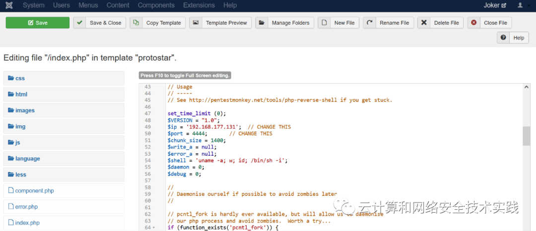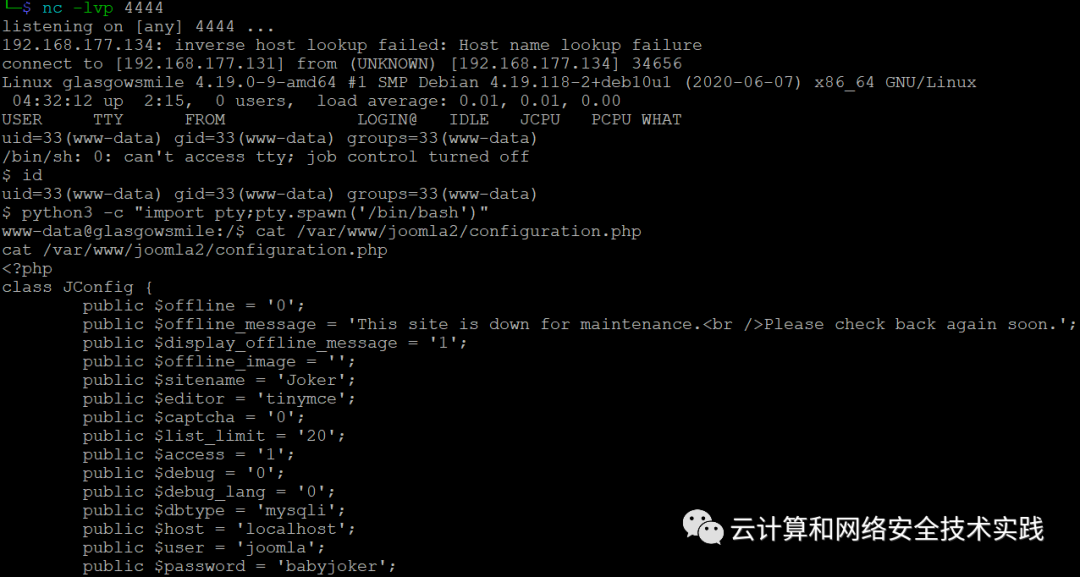 浏览器访问http://192.168.177.134/joomla/templates/protostar/index.php,获取到反弹shell,